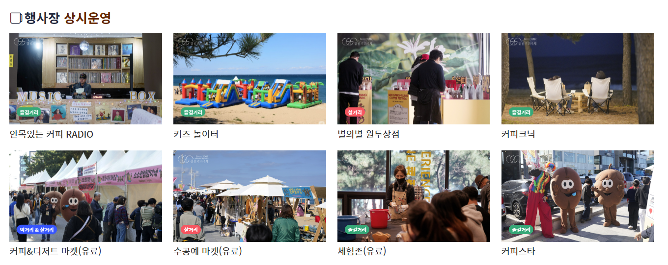 - 웰컴커피숍 – 축제 방문객을 위한 커피 환영존