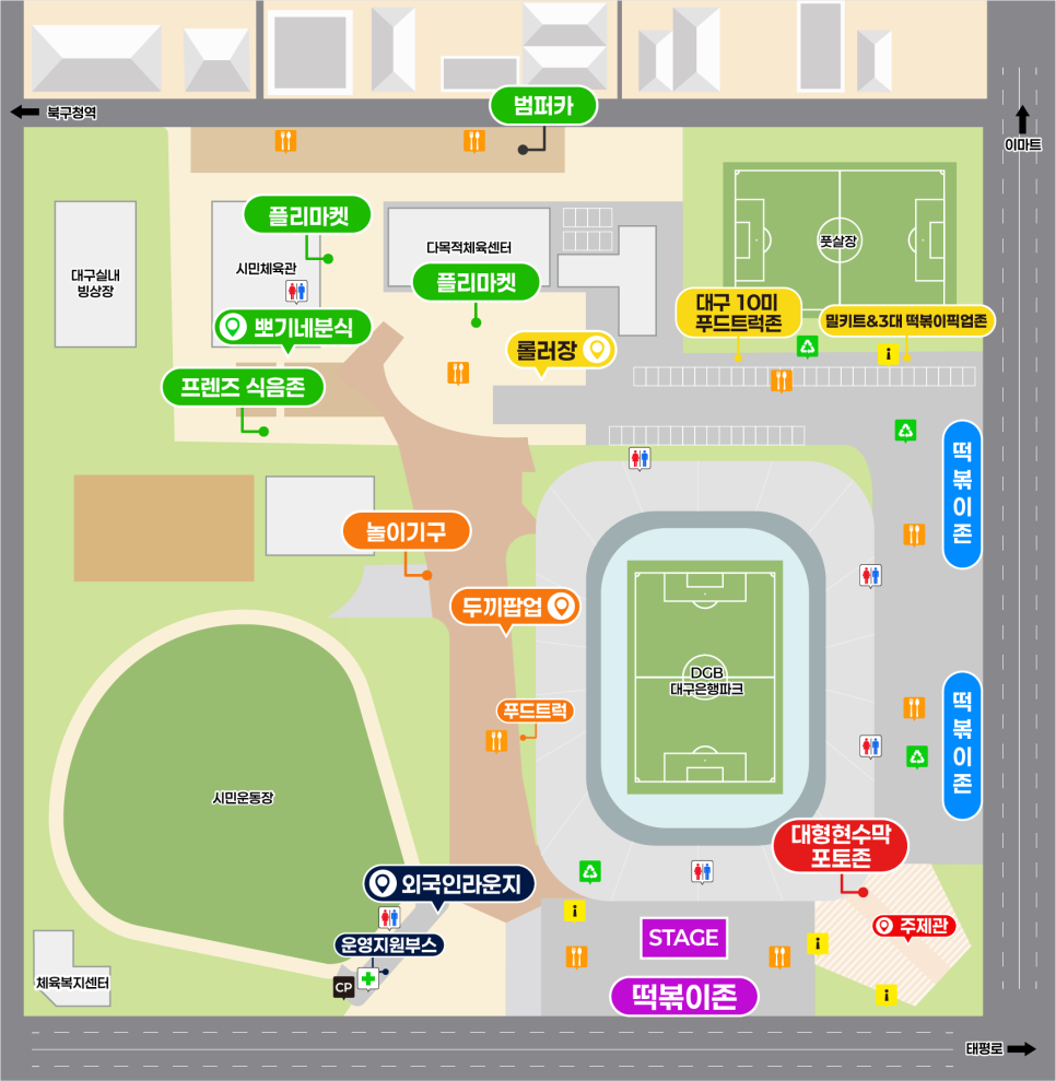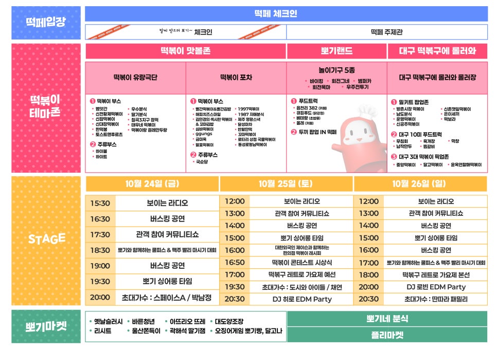 - 푸드트럭존 & 대구10미존: 뽀기네, 팝업부스 포함 다양한 분식